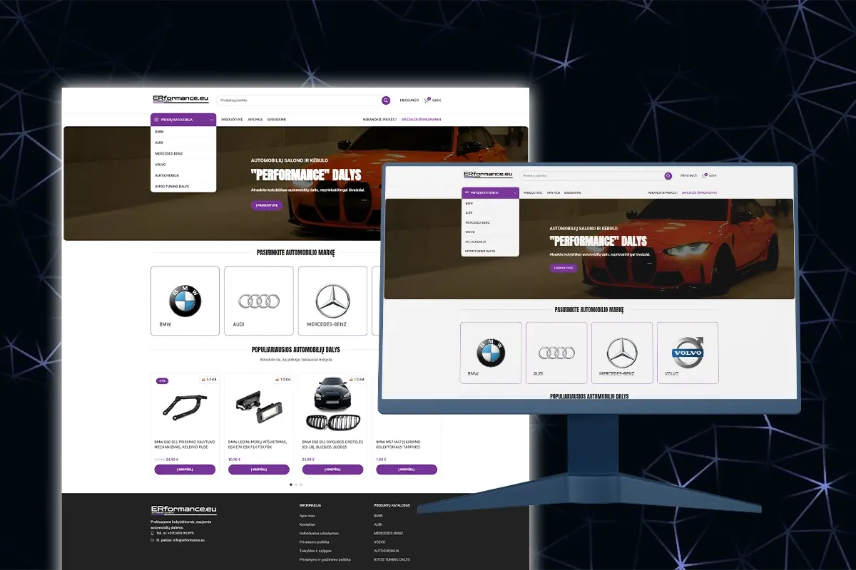 Projektas apima visapusišką platformos sukūrimą naudojant WordPress ir WooCommerce sistemą, įgyvendinant visus būtinus funkcionalumus – nuo intuityvios paieškos pagal automobilio markę/modelį iki individualių užsakymų pateikimo formų. Dizainas pritaikytas pagal kliento stilistiką, užtikrinant patrauklų, tačiau technologiškai efektyvų vartotojo patyrimą tiek mobiliuose įrenginiuose, tiek kompiuteriuose.